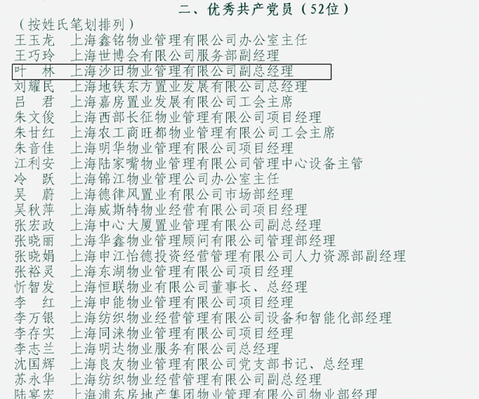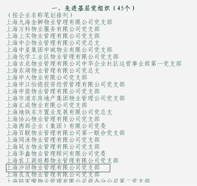 熱烈祝賀我司黨支部榮獲上海市物業(yè)行業(yè)協(xié)會“先進基層黨組織”稱號、副總經理葉林榮獲優(yōu)秀黨員稱號。