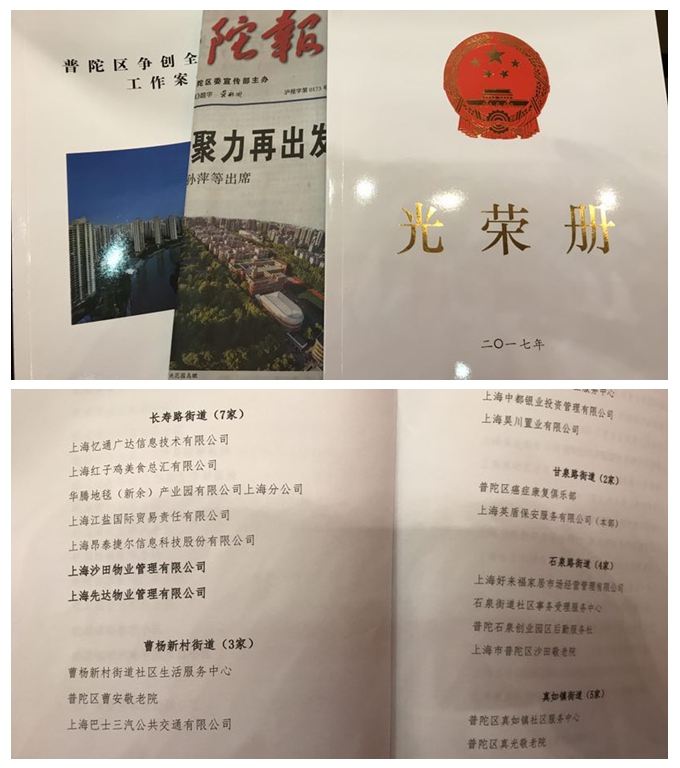 熱烈祝賀沙田物業(yè)被評為普陀區(qū)文明單位