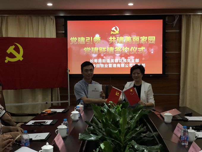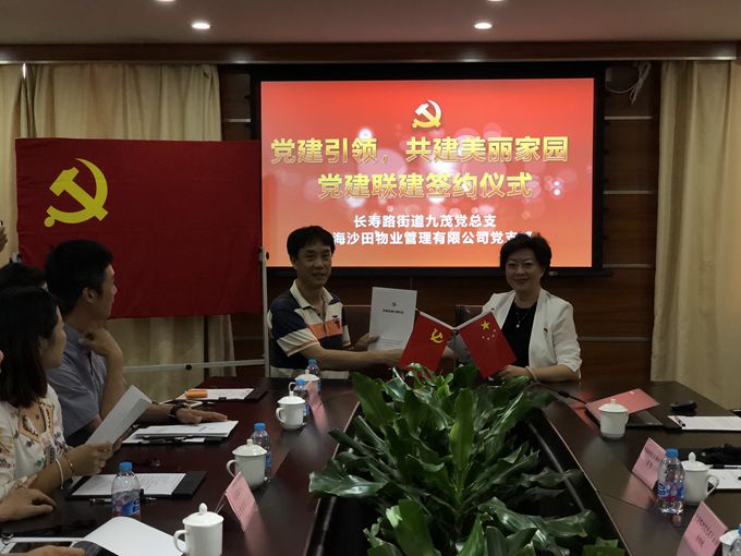 2018年6月28日,由市物業(yè)協(xié)會(huì)黨建工作指導(dǎo)委員會(huì)普陀分會(huì)和沙田物業(yè)聯(lián)合舉辦的“黨建引領(lǐng)共建美麗家園,迎七一黨建聯(lián)建工作推進(jìn)會(huì)暨共建協(xié)議簽約儀式”在沙田物業(yè)公司總部舉行。長(zhǎng)壽路街道黨建辦、長(zhǎng)壽路街道九茂黨總支、長(zhǎng)壽路街道芙蓉花苑黨支部、長(zhǎng)壽路街道上青佳園黨支部、曹楊新村街道沙溪園黨總支出席本次會(huì)議,沙田物業(yè)黨支部、公司職能部門(mén)參會(huì)。