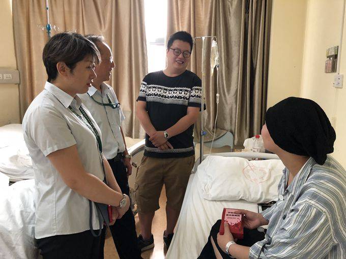 2018年9月12日下午,公司黨支部、公司工會領(lǐng)導(dǎo)來到醫(yī)院親手將愛心捐款交到黃君和他妻子的手中,并鼓勵(lì)他們生活要堅(jiān)定和樂觀。公司的關(guān)懷與鼓勵(lì),黃君十分感動,他表示會加倍努力的工作來回報(bào)大家的關(guān)心和愛護(hù)。
